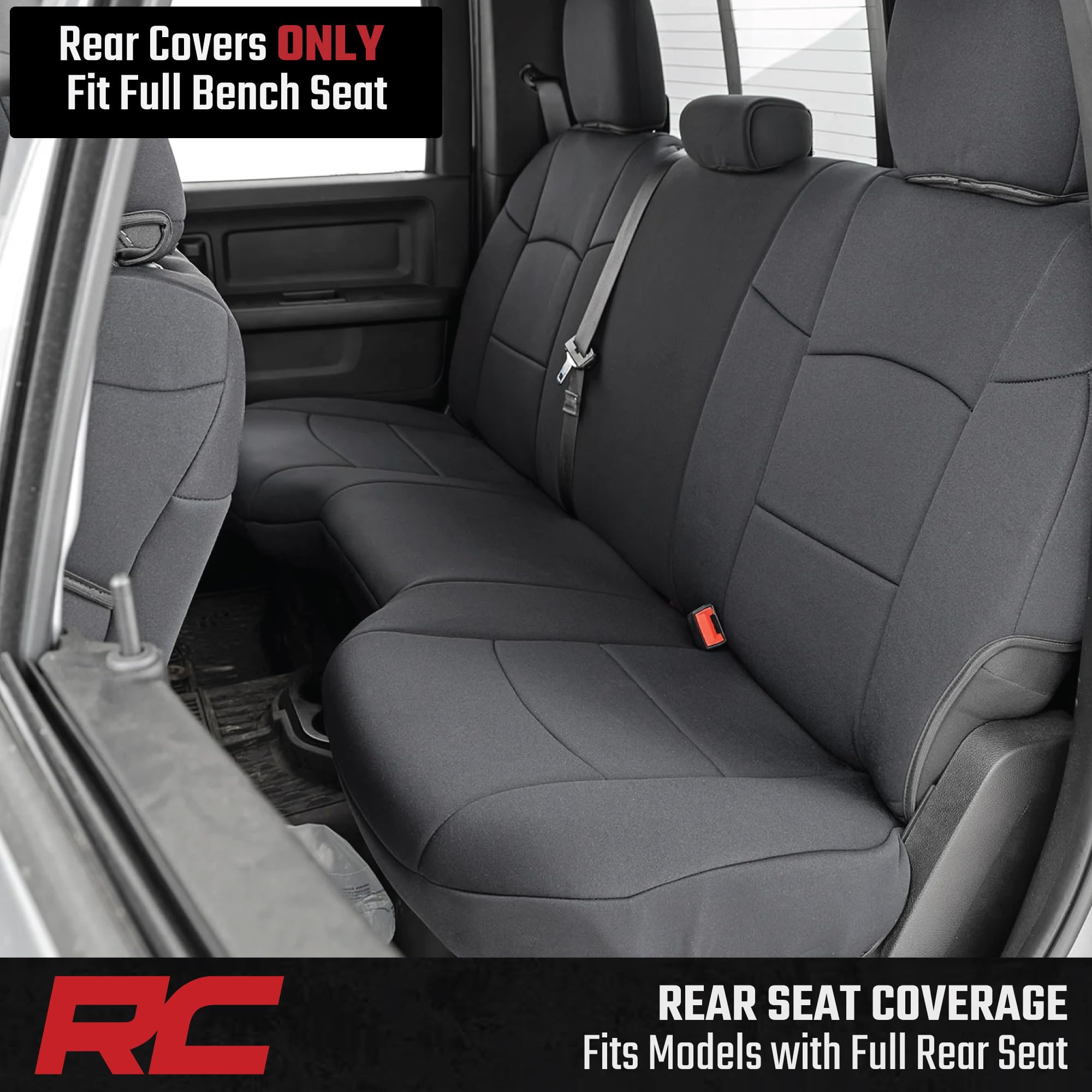 Rough Country Neoprene Seat Covers for Dodge Ram (2019-2024) - UV & Water Resistant, Foam Padded Truck Seat Covers - Full Set, Black, Front & Rear
